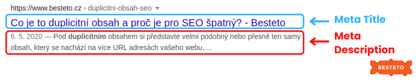 Na originální a zajímavý článek se nikdo neproklikne, pokud nebude mít vhodně vyplněné Meta Tagy. Při psaní článku věnujte speciální pozornost také těmto dvou částem: Meta Title a Meta Description.